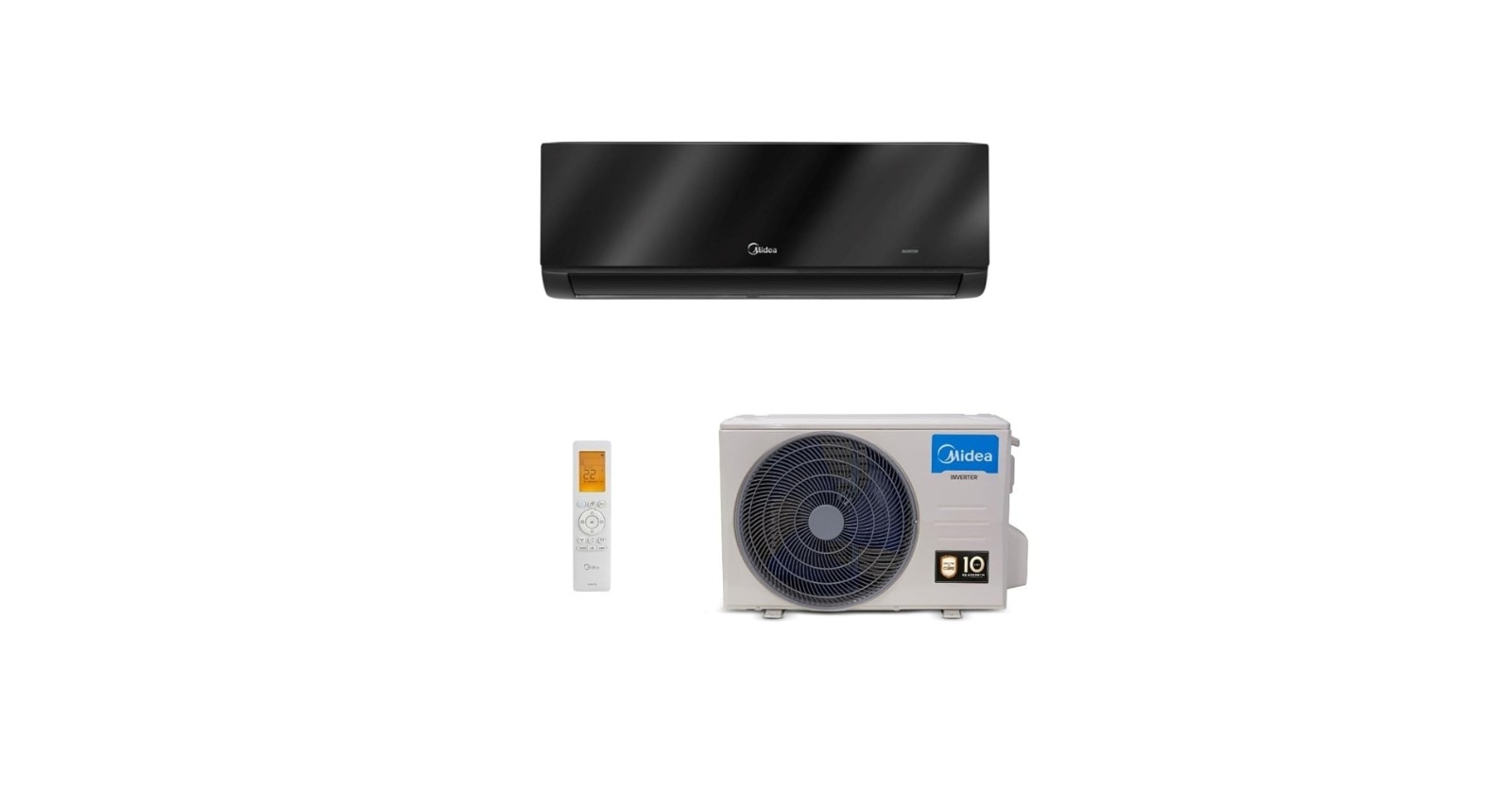 Este é um ar-condicionado split Midea Inverter de 18.000 BTUs, operando em 220V.