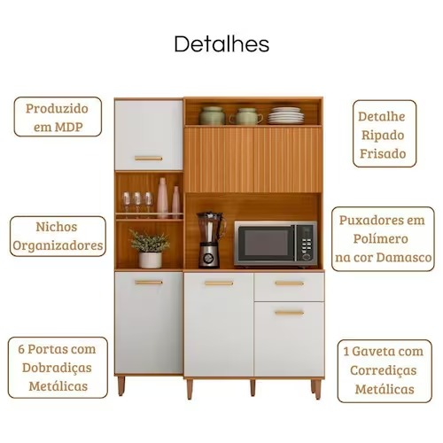 Trata-se da Cozinha Compacta 6p 1g 137 Cm Joly Freijo Off White Ripado P.