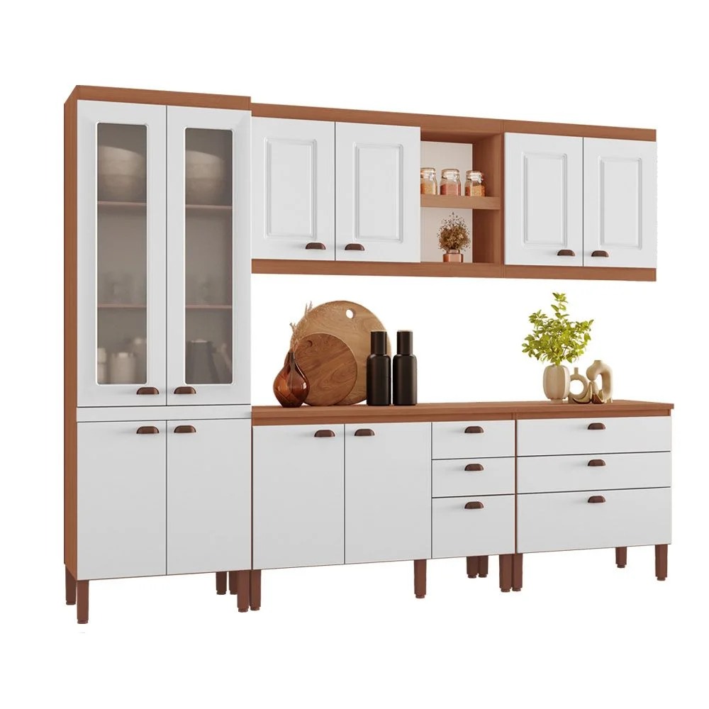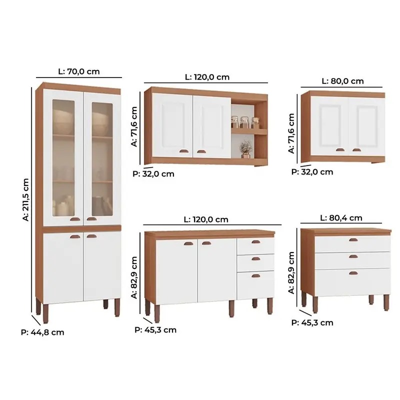 Esta é a Cozinha Completa Jessica com 5 Peças Tuboarte na cor Freijó com Off White, feita de 100% MDF.