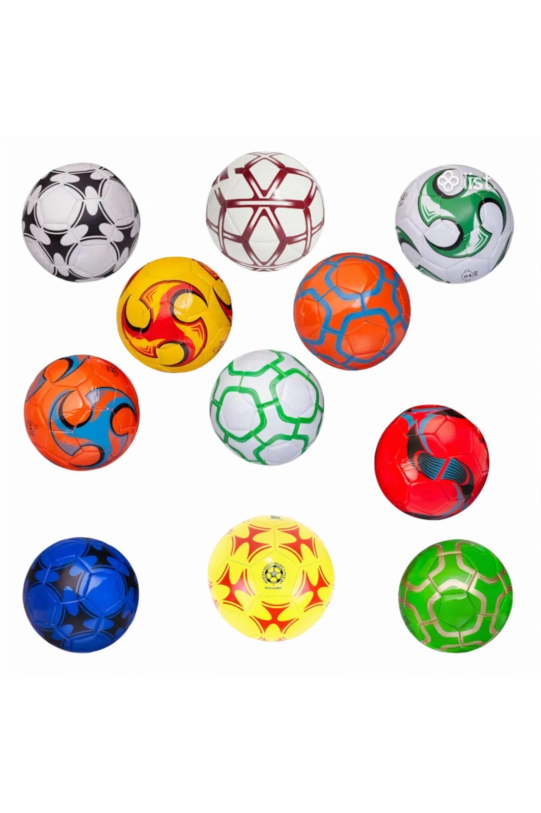 Trata-se de um conjunto de bolas de futebol de diversas cores e designs, algumas delas com a marca “Maging” visível.