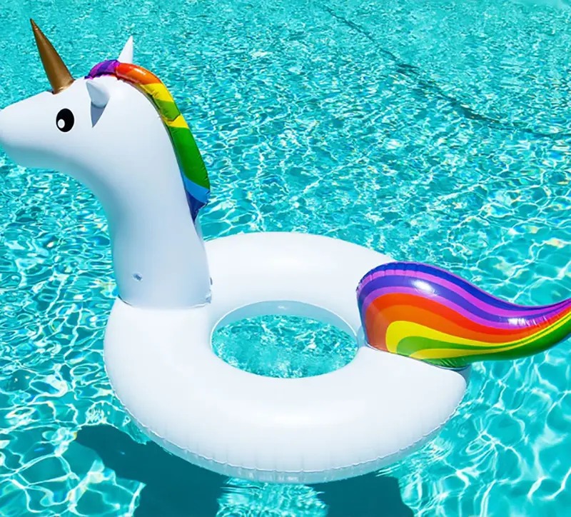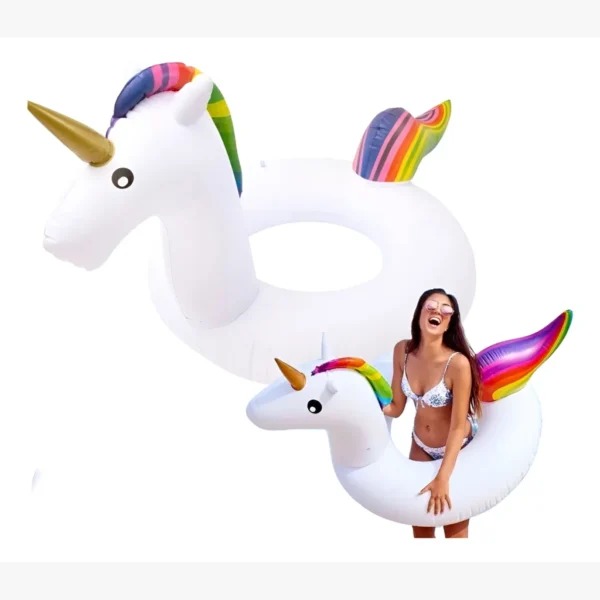 Este é um flutuador ou boia inflável de unicórnio para piscina.
