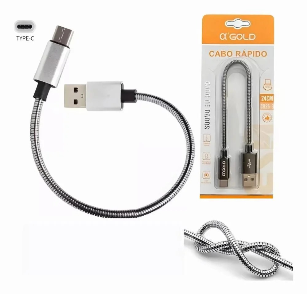 Trata-se de um cabo de dados e carregamento rápido A´Gold CB25-3.