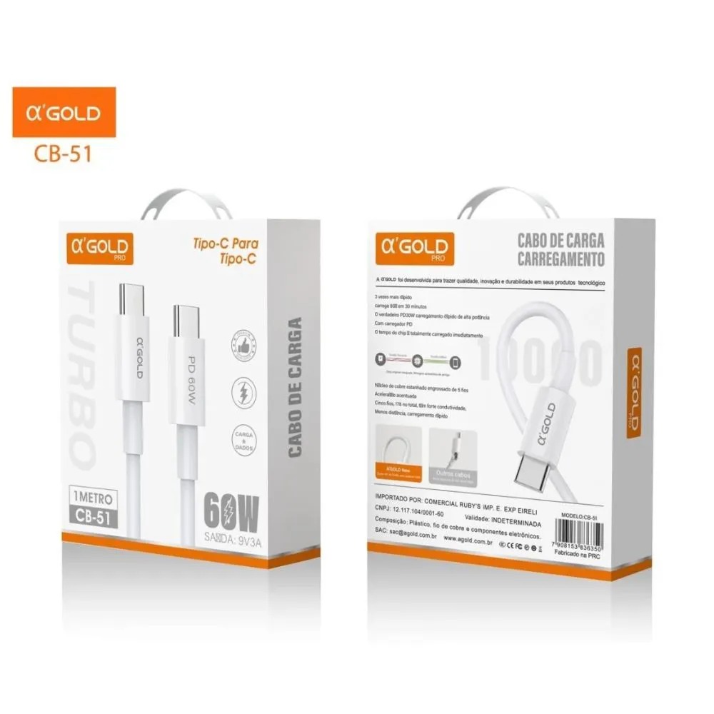 O item é um Cabo OK Gold Tipo-C CB86, um cabo USB-C da marca a’Gold.