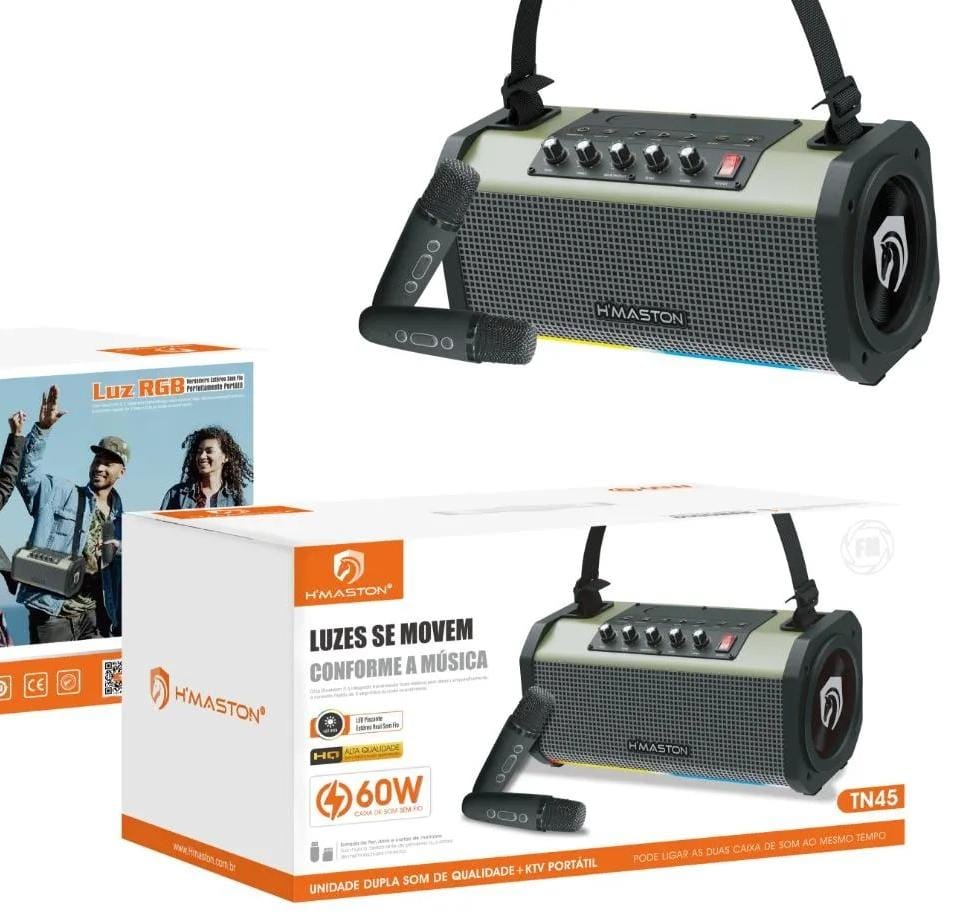 A caixa de som H’Maston TN45 é um produto de áudio portátil com as seguintes características principais: