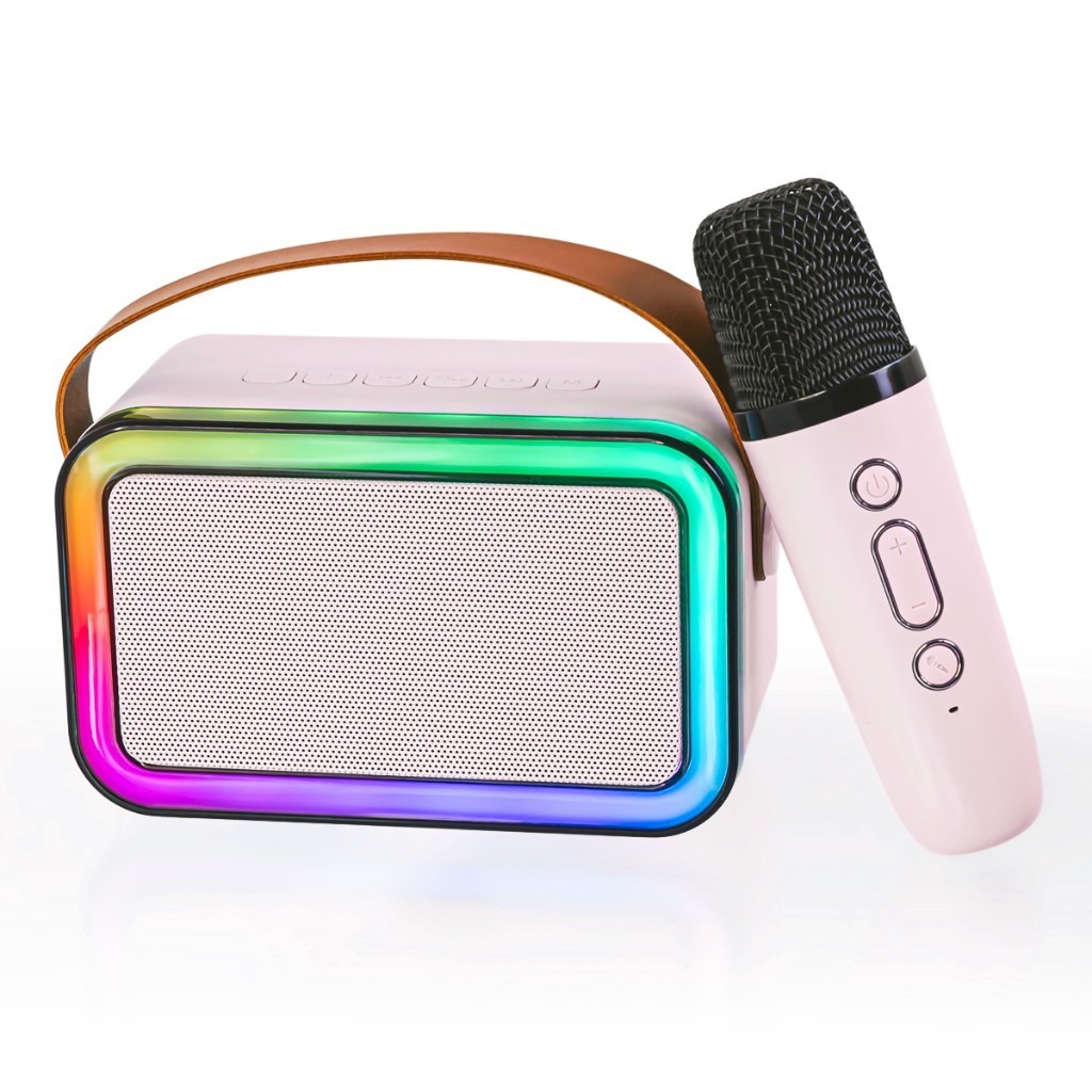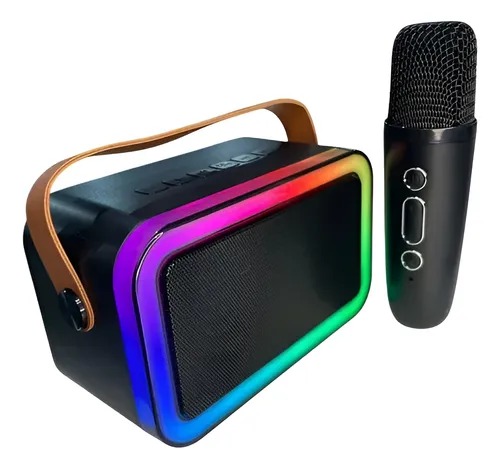 - Recursos: Inclui um microfone para karaokê e possui iluminação LED RGB.