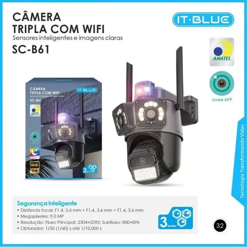 O item na imagem é a Câmera Inteligente WiFi IT-BLUE SC-B42.