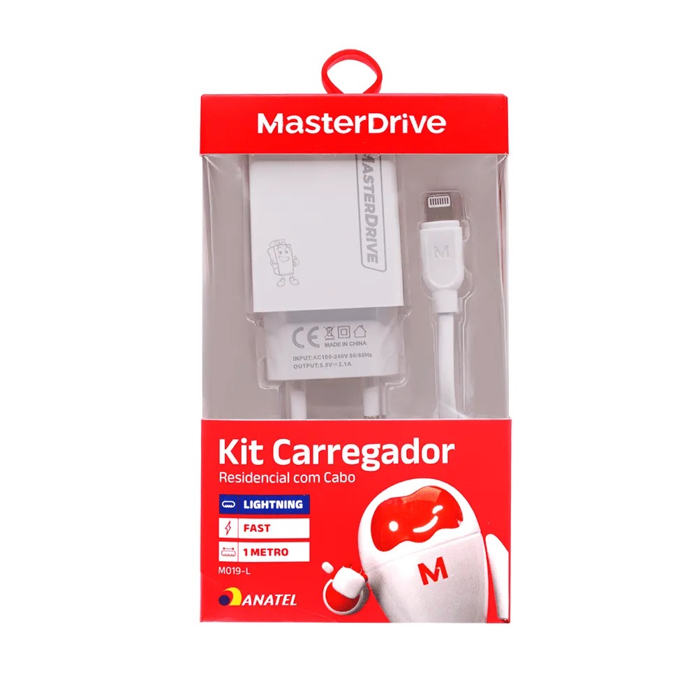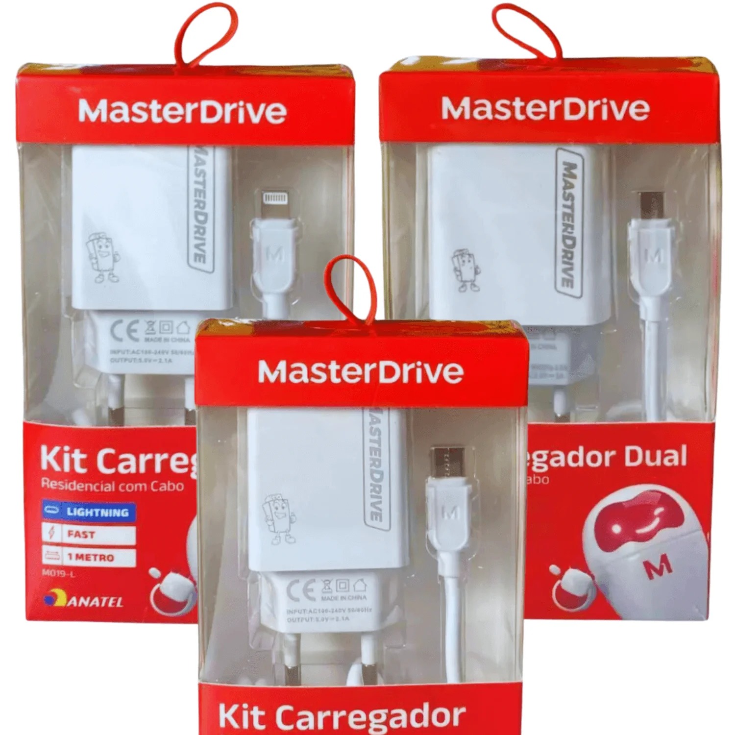 O carregador MasterDrive é um acessório para dispositivos móveis (celulares, tablets, etc.) oferecido pela marca brasileira MasterDrive, que também fabrica pen drives, SSDs e outros periférico