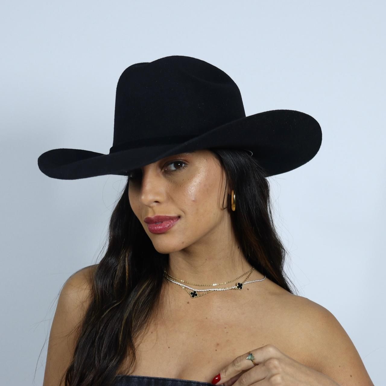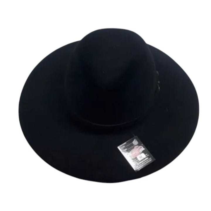 A etiqueta na imagem descreve um chapéu preto com proteção solar, com preço de venda e atacado.
