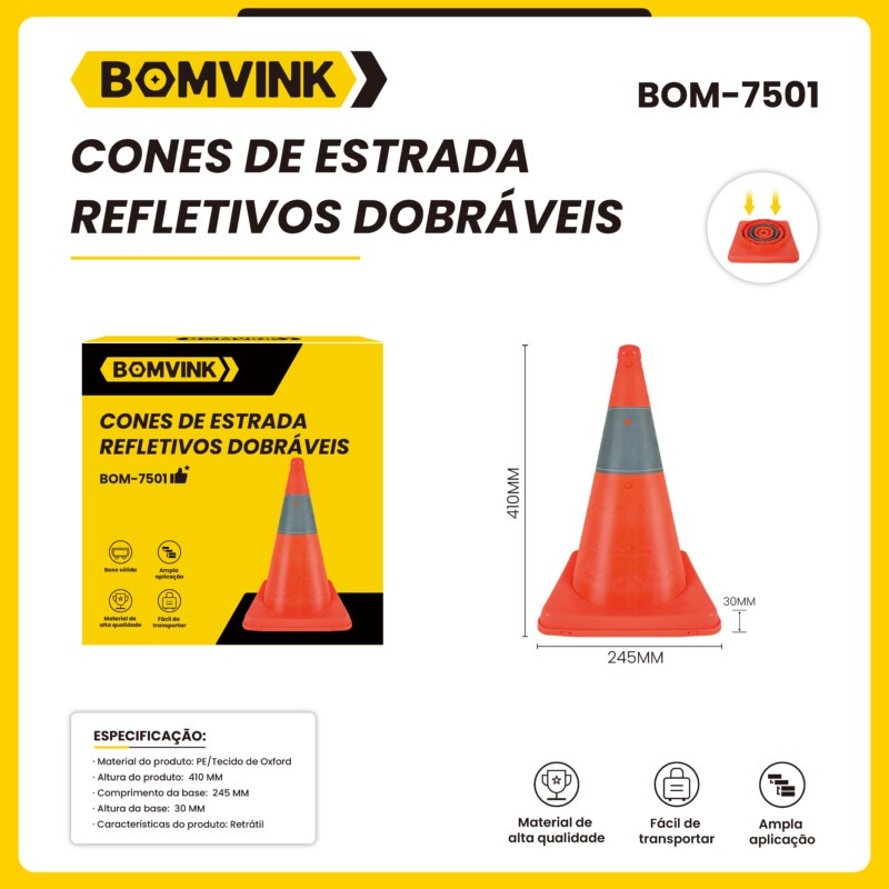 O item na imagem é um Cone Refletivo Dobrável Bomvink BOM-7501.
