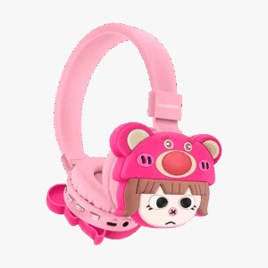 Trata-se de um fone de ouvido sem fio infantil H’maston SN20 na cor rosa com um design de personagem “cute girl”.