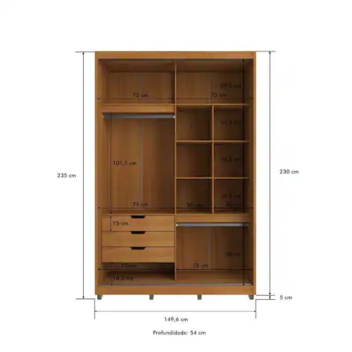 - Gavetas: 3 internas com corrediças telescópicas.