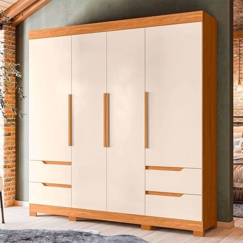 Este é um Guarda Roupa Vivacce Casal 4 Portas Albatroz Carvalho Grife/Off White.