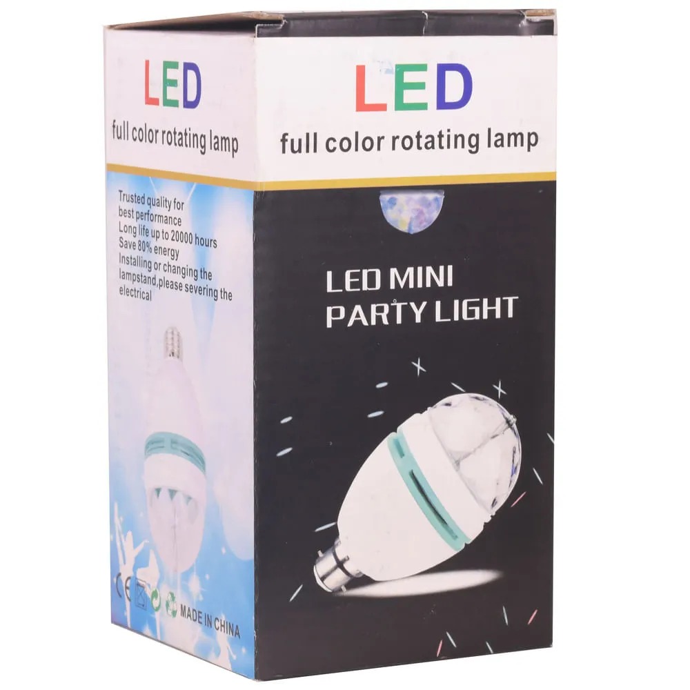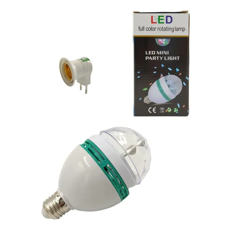 Trata-se de uma Lâmpada Colorida Giratória Mini Party Light LED.