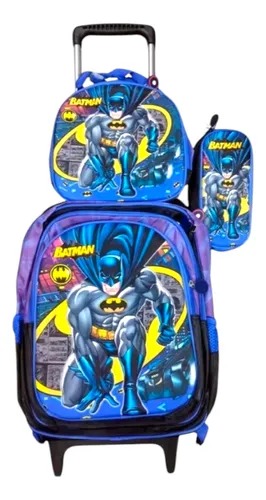 São mochilas de rodinhas infantis com o tema do Batman e dos Vingadores: