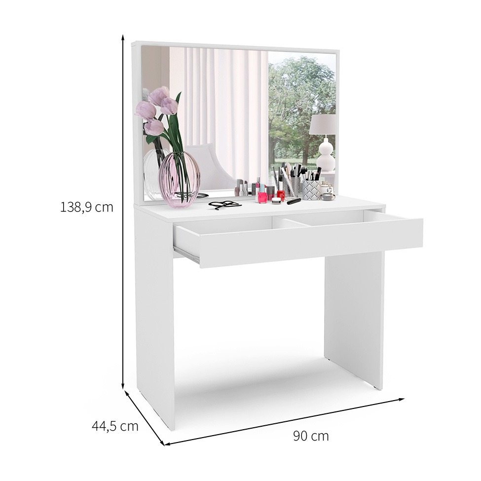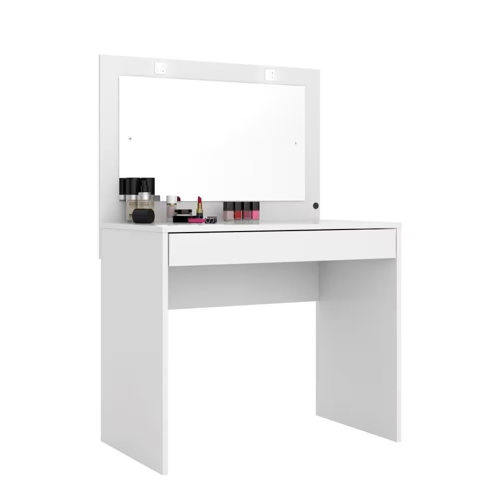 • Tipo: É uma penteadeira estilo camarim, projetada para maquiagem e cuidados pessoais, com luzes LED integradas ao redor do espelho para uma iluminação uniforme.