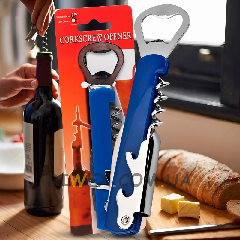 - Funcionalidade 3 em 1: saca-rolhas, abridor de garrafas e cortador de alumínio.