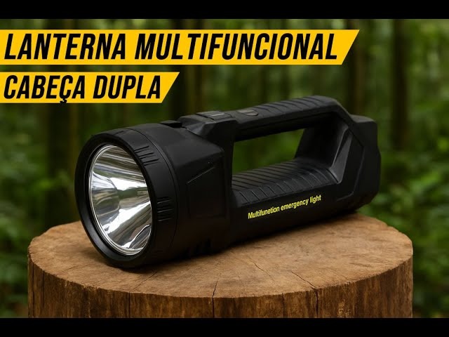 O objeto na imagem é provavelmente uma lanterna tática ou ferramenta multifuncional, com base nas marcações visíveis.