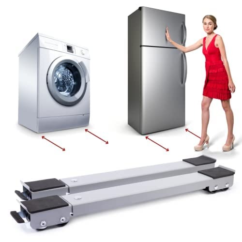 O item em destaque é um suporte ajustável para eletrodomésticos, como máquinas de lavar e geladeiras.
